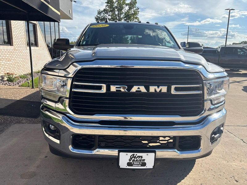 2020 Ram 2500 Big Horn Local trade, excellent condition, and fully equipped for work or play. Powered by the 6.4L Heavy Duty HEMI V8 paired with an 8-speed automatic transmission , this truck delivers serious capability with Snow Chief Group , 4.10 rear axle , automatic rear air suspension , and 5th-wheel/gooseneck prep . Inside, enjoy premium cloth bucket seats , heated seats and steering wheel , dual-zone automatic climate control , and Uconnect 4C NAV with 8.4" touchscreen , Apple CarPlay , Android Auto , and Wi-Fi hotspot . Additional highlights include power-folding tow mirrors , ParkSense front and rear park assist , blind-spot monitoring with trailer coverage , spray-in bedliner , LED bed lighting , deployable bed step , chrome side steps , and 18" aluminum wheels . Comes with our lifetime engine warranty up to $4,000 "if" you get your oil changes done here and get the BG additive applied every visit! You're not just a number here at Jim Baier, our #1 priority is taking care of you before, during, and after the sale! We strive to build a lasting relationship with our customers and service their transportation needs for life! And that's what has given us the privilege of being named the #1 rated dealer in Southeast Iowa. Come experience the difference! Call/text (319) 371-4268, or email us at JESSE@jimbaier.com before you stop in to make sure this vehicle is still available and we'll have it pulled up front when you arrive!